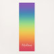It's colourful and bright yoga mat design. It has Gradient rainbow colours which gives it fun and vibrant look. It also has typography script text monogram which you can easily customise with your name and create your own design.