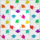 Fun graduation fabric with a pattern of colourful graduation caps against a white background.