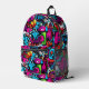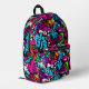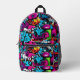 This backpack showcases a vibrant and intricate graffiti-inspired design, perfect for those who embrace urban art and a bold, expressive style. The all-over print is a high-energy collage of stylised, bubbly letters and abstract shapes in a striking colour palette of neon pink, electric blue, lime green, and magenta, creating a dynamic visual flow. Playful characters with cartoonish eyes are cleverly integrated into the chaotic composition, adding a whimsical touch. This design appeals to a younger audience, including teens and young adults, who appreciate street culture, artistic expression, and statement accessories. It's an ideal choice for students, artists, or anyone looking to infuse their everyday look with a touch of Y2K-inspired, hip-hop aesthetic.