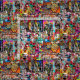 This colourful collage of graffiti wall art is great for home accents throughout the house. Use as draperies in the kids or game room.