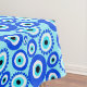 Colourful Greek Eye Pattern on Aqua Blue Tablecloth