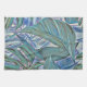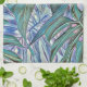Watercolor Painting of few very large tropical leaves from tropical plants. The leaves are very different in shape and size, and the colours used in this watercolor are mostly shades of blues and greens. This design shows a rich, luxurious tropical foliage vegetation.
