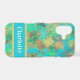 This colourful green, yellow and blue drops abstract pattern design has space for your name. A unique, modern, and personalised phone design bridges the gap between high-end, sustainable materials and advanced, customisability.