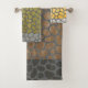 Colourful Grey Screen Pebbles Bath Towel Set. Golden Yellow, Green, and Brown in a fun, modern, artsy pattern.
