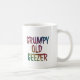 Bright multicolored lettering made to appear slightly 3-D, GRUMPY OLD GEEZER. Design is repeated on both sides of cup. Shown against plain white background - you can add a background colour behind the design is you'd like.