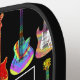 Guitar themed custom name black pickleball paddle. Colourful electric guitar, acoustic guitar and semi acoustic guitar pattern in funky psychedelic colours with monogram name. Personalise the name in modern typography by the easy to use template. Any guitarist or musician will tell you that you can never have to many guitars. This fun colourful guitar design celebrates the energy and variety of this wonderful musical instrument. The perfect gift for guitarists, musicians and music lovers. Psychedelic guitar pop art original artwork by artist Catherine Sweetman