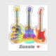Funky psychedelic electric guitar and semi acoustic guitar and acoustic guitar illustration contour stickers in vibrant bright colours. Any guitarist or musician will love these fun colourful pop art guitars as they celebrate the music energy and variety of this wonderful musical instrument. The perfect gift for guitar players and music lovers. Original artwork by artist Catherine Sweetman