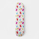A skateboard deck with a pattern of gummy bear candies and small dots.