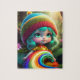 Colourful Beautiful Fluffy Little Cute Girl With Rainbow Hair Colours in a Magic Realm, Girly Art Fantasy Style.