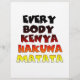 Infuse your space with joy and vibrancy through our Colourful Hakuna Matata: A Kenyan Celebration design! This striking artwork features bold text that reads "Everybody Kenya Hakuna Matata," presented in a vibrant palette of black, red, golden yellow against a clean white background.
