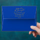 A retro modern hand written bright colourful wedding envelope. Which features bold bride and groom's names in yellow with blue background. And personalised return address a. Which suits the whole wedding suite.