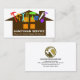 Cover features a brown home with a creative handyman and construction tools design near the rooftop. At the base of the card is the business name and its contact details.