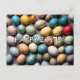 This unique postcard features a variety of colourful Easter eggs.