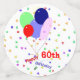 Fun, cheerful and colourful 60th birthday design with balloons and confetti.