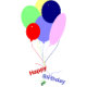 Fun, cheerful and colourful 70th birthday image with balloons and confetti.