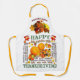 A unique, colourful Thanksgiving Day apron, with pumpkins and other seasonal produce and fall leaves.