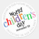 Celebrate World Children's Day with these commemorative stickers, which feature the celebration "World Children's Day" in a colourful spectrum of playfully skewed letters, surrounded by wrapped text (the message for 2024) on the top and bottom.