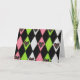 Colourful Harlequin Print with Rose Hearts Holiday Card