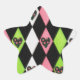 Colourful Harlequin Print with Rose Hearts Star Sticker
