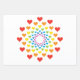 Pretty colourful hearts in concentric circles, in the colours of the rainbow. The paper sheets of the set have different layout heart patterns on them. Ideal for birthdays or Valentine's day.