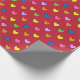 A wrapping paper with a colourful heart pattern on a red background. Customise the background colour among other options.