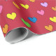 Colourful Hearts on Red Wrapping Paper