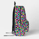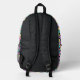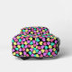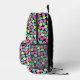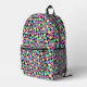 A lovely backpack with a variety of colourful hearts on a black background.  Enjoy this cute design while having a place to store your items.
