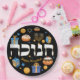 Colourful Hebrew Hanukkah Dreidel Menorah & Doughn Paper Plate