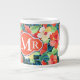 Colourful Hibiscus Pattern | Monogram Large Coffee Mug