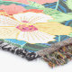 A quality printed throw has its advantages. This is a much finer weave throw than its loopier cousins, and though lighter, it is worth the investment for custom room accessorizing. The back is much prettier than the typical brown, and the fringe on the long sides very vivid, the selvage nicely done. Before photographing, I washed the throw in cold water, delicate, with a thicker woven throw the same size. On tumble dry low, this throw was dry in half the time as the other. This is a very practical quality if you use throws for furniture covers or to wrap up in frequently. The sleekness of the fabric makes it a great layer for accenting or protecting without the feeling of sitting on too much stuff. Perfect for napping or when you feel a light chill coming on. The color printing is beautiful and on this fabric, matched the design and color of my Photoshop image. This is an advantage for blending room fabrics and colors. The fringe on the short sides prints the colors from the design image and therefore varies from the side fringe. I streaked a white fractal line through the plaid pattern to give the illusion of weaving. This printed as crisp as an illusory thread, and put some white in the short side fringe, showing another advantage of print vs loomed- for artistic purposes, line lines, detail, and color integrity can be planned and preserved. My loomed throws have color limitations and more of a needlepoint texture. Print throws reproduce an exact image. The throw felt a little stiff straight out of the package, but this went away in the first delicate wash. Of course I searched the wash water for ink or bleeding and there was none.