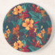 Colourful Hibiscus, Yellow Orange Green Floral Coaster
