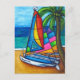 Colourful hobbie cat boats on a beach in the Caribbean by Lisa Lorenz