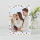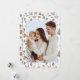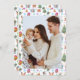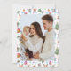 Celebrate the season with this joyful holiday card featuring your family photo framed by a bright festive border. The playful design includes colourful Christmas trees, reindeer, snowflakes, ornaments, cupcakes, gifts, and holiday icons on a white background. With its fun and cheerful style in shades of red, green, blue, and gold, this card brings a lively touch to your holiday greetings. The back of the card features a Christmas message, making it the perfect way to share warmth and happiness with loved ones.