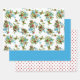 Festive trio of coordinating designs featuring colourful red and green holly, light blue forget-me-nots and coordinating red polka dots and solid matching blue. Background colours are editable and floral pattern is scaleable.