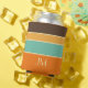 Simple retro style design with brown, orange, yellow, turquoise and pastel yellow horizontal stripes decoration. This item is for everybody who likes retro style designs and retro colour palette. It is easy to customise it by changing the name/monogram/date etc.