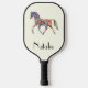 This lovely Pickleball Paddle, which has a contemporary abstract horse made up of bright waves, would make an excellent present for a young woman in her teen years. This item's reverse side features a pattern of the same image.The background of both sides is ivory.