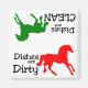 This unique dishwasher magnet features a Red Stallion with text that reads: "Dishes are Dirty". Turn this magnet up-side-down and a Green Stallion is featured with the text: "Dishes are Clean".