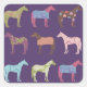 This fun and whimsical design features a pattern of standing horses in bright colours such as pink, purple, lavender, blue, and shades of green. This pretty girly pattern has horses wearing blankets and long manes that is great for anyone who loves ponies and is an equestrian!