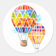 traditional watercolor design of two colourful hot air balloons in the sky on a sticker