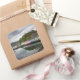 Photo sticker with the colourful fishing harbour houses of Portree town, with reflection in the still water of the sea on the Isle of Skye in Scotland, UK.