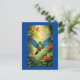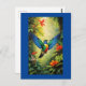 Colourful hummingbird with dazzling plumage in the Brazilian rainforest. Blue frame.