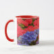 This pretty mug features my original photograph of Hydrangea garden flowers in colourful tones. The handle and inside of the cup are a red tone to complement the artwork.
