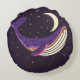 Colourful illustration portrait of cute whale in space with moon and stars. Hand drawn wild animal.