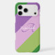 A colourful pastel green and purples diagonal striped phone case with template name and initial letter monogram is a idea for a new phone or special occasion gift. Personalise the text with a name and/or initials, remove any or all text or use the edit design tool to select a font style, size, and colour you prefer.