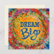 Dream big! Colourful Inspiring Graduation Card. The whimsical design adds cheer to this hand drawn art piece. The fun pop of colour makes for an eye catching card. To see more of my daily, inspirational artwork, check out my Facebook and Instagram pages.