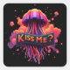 Colourful Jellyfish Illustration With Kiss Me Text Square Sticker