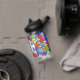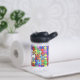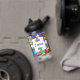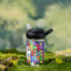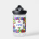 Colourful jigsaw patterned personalised bottle.