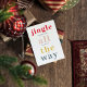 Vibrant colored letters, trees, holly and cancy canes in a cheerful message suitable for a non-religious holiday greeting. I especially liked it on the black background which made the design pop.