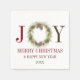 Colourful JOY word art with wreath adorned with pine cones and holiday berries personalised paper napkins.