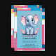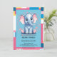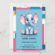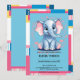 Adorable baby shower design featuring a cheerful blue elephant with playful pink ears, surrounded by bright patterns and jungle-inspired accents. Perfect for gender-neutral or baby boy celebrations. If you need any other matching product or customisation, kindly message via Zazzle.